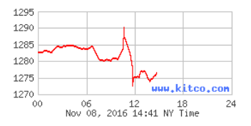 Gold right now is where it was in October when it priced for the expectation of an interest rate hike in December. It rose when Trump was doing a little bit better and then fell back when Hillary got the “all clear” from the FBI.